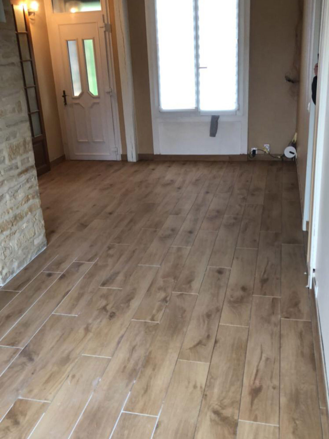 Chantier LEGOUT : carrelage sol imitation parquet à Savigny-sur-Orge