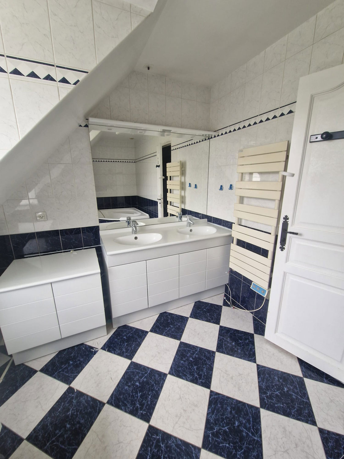 • Confort et finitions : Installation d’un ensemble meuble-vasque suspendu avec miroir assorti, pose d’un nouveau sèche-serviette performant (Adelis) et réalisation d’une faïence élégante avec baguettes de finition.